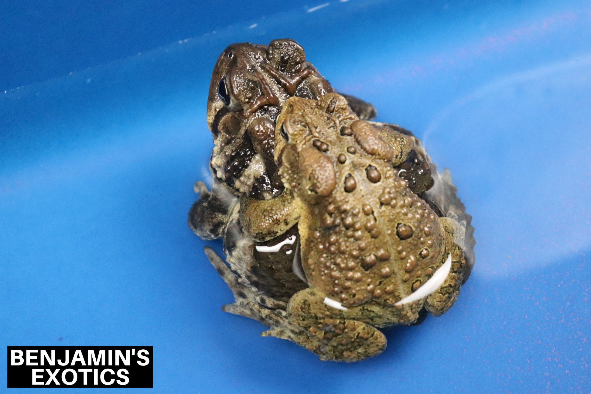 These are captive bred Eastern American Toad tadpoles produced in house here at Benjamin's Exotics. This spawn came from our wild caught Ohio locality group of Eastern American Toads. They were spawned on September 7th, 2024 and are currently growing very fast on a diet of tropical fish flakes with weekly water changes. Water temperature is in the low to mid 70s Fahrenheit. They should start coming out of the water in a little under 2 months if kept properly.