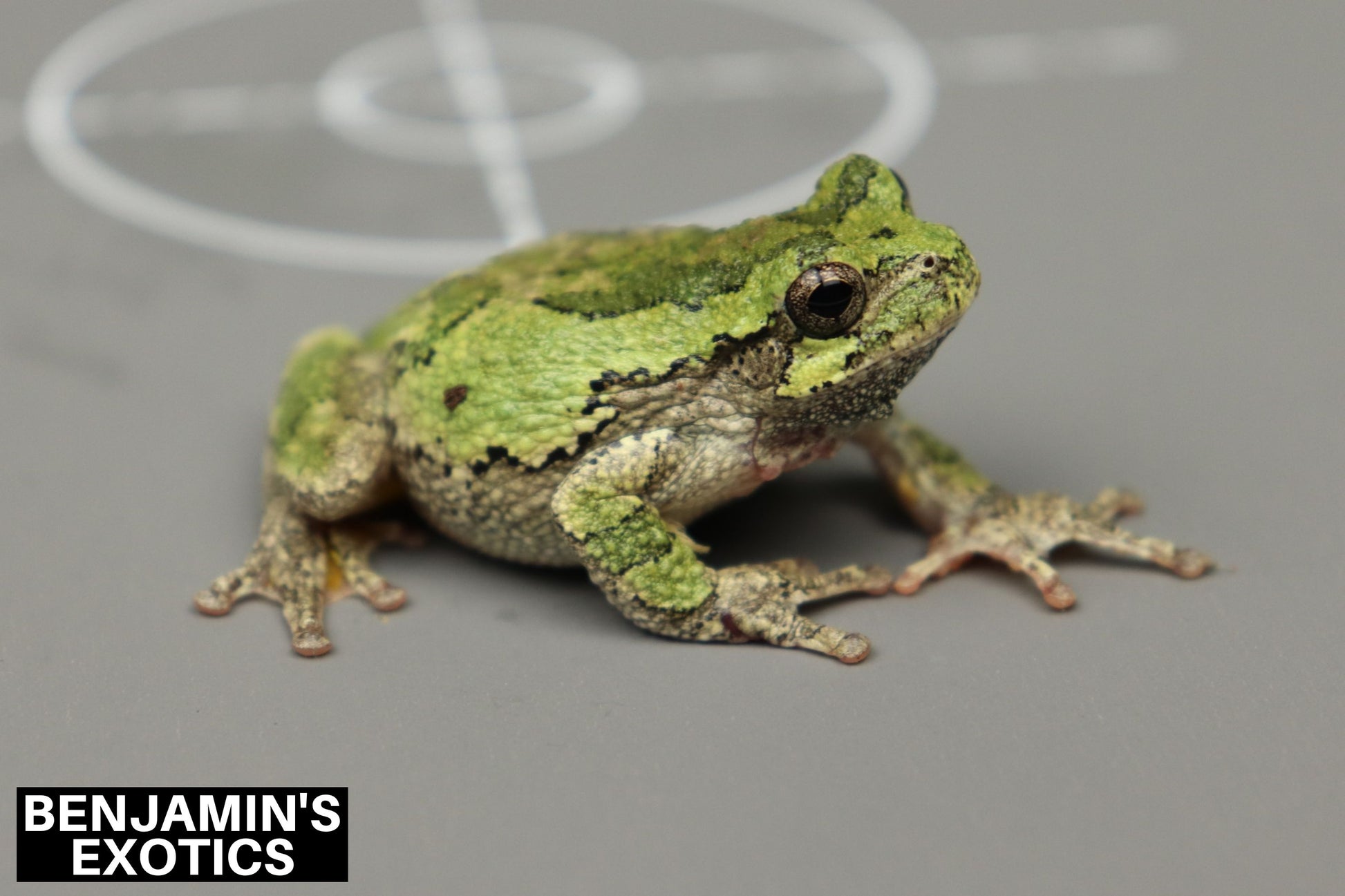 These are captive bred Eastern Gray Tree Frog tadpoles produced in house here at Benjamin's Exotics. This spawn came from our Ohio locality group of Eastern Gray Tree Frogs. They are currently growing very fast on a diet of tropical fish flakes with weekly water changes. Water temperature is in the low 70s Fahrenheit. They should start coming out of the water in a little under 2 months if kept properly.
