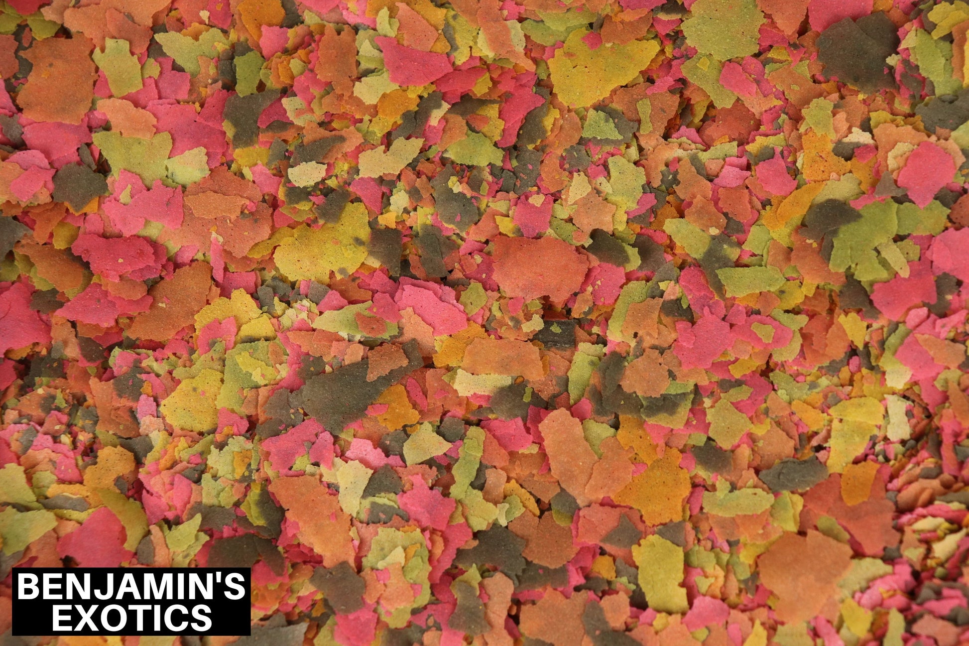 These are tropical fish flakes. They are an excellent staple for raising a variety of frog and toad tadpoles up until they start coming out of the water. They come in a large flake form, but it is recommended to manually grind them up before feeding them to tadpoles as the smaller pieces are eaten quicker and have less time to pollute the water.